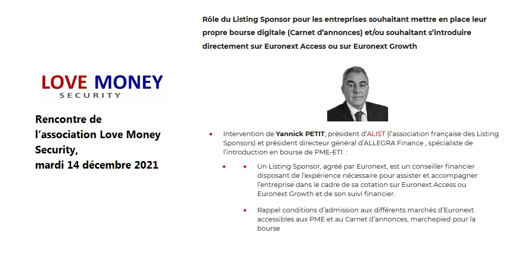Rôle du Listing Sponsor pour les entreprises souhaitant mettre en place leur propre bourse digitale (Carnet d’annonces) et/ou souhaitant s’introduire directement sur Euronext Access ou sur Euronext Growth